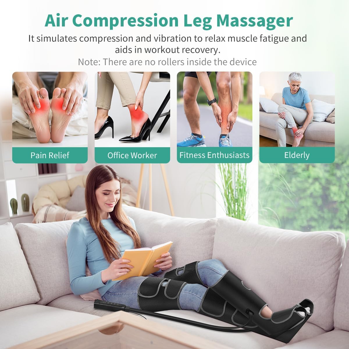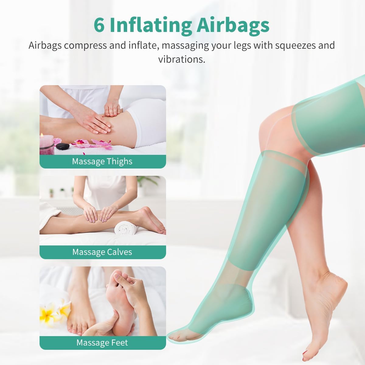 يعتمد الجهاز على مجموعات أكياس هواء 3x3 تضخ وتفرغ بالتتابع لتنغمس عضلات القدم، الساق، والفخذ في دورة ضغط متناسقة. هذا النمط يحفز الدورة الدموية، يخفف من احتباس السوائل ويعمل على تخفيف الألم العضلي بعد الجلوس الطويل أو التمرينات الشاقة — كأنه جلسة مساج محترفة في بيتك.
