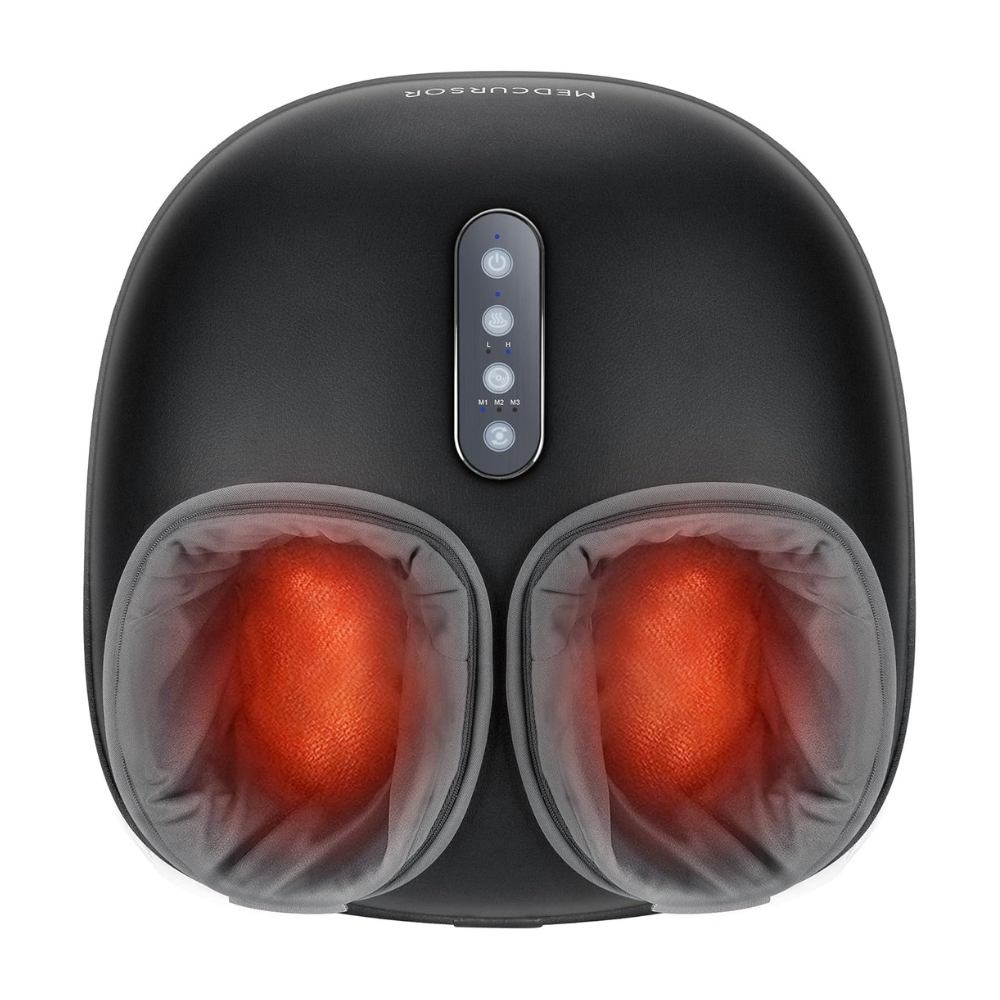 الوقوف الطويل، الأحذية الضيقة، أو الإرهاق بعد الرياضة يخلّف شعورًا بالثقل والألم في القدمين يصعّب عليك النوم أو الحركة بسهولة. جهاز تدليك القدم المدفأ بعجن عميق من Medcursor صُمّم ليمنح قدميك جلسة مساج احترافية في المنزل — يخفف الألم، ينشّط الدورة الدموية، ويعيد لك الراحة بسرعة.