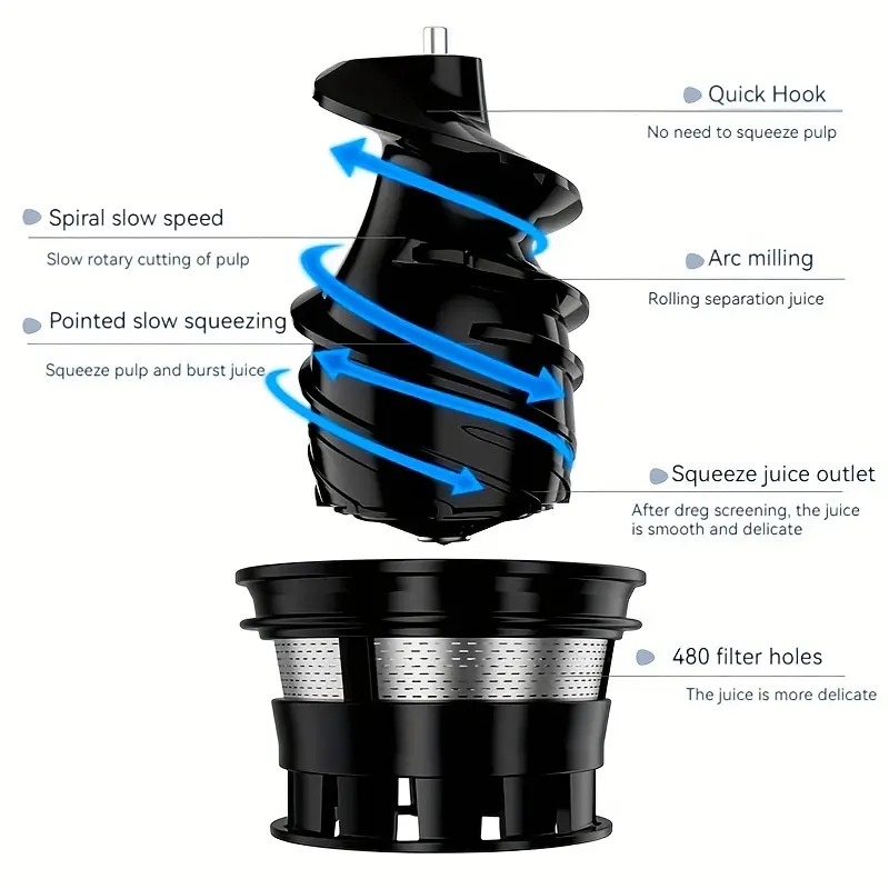 - 🍎【ضوضاء منخفضة 55 ديسيبل】 نظام حلزوني مطور حاصل على براءة اختراع وسرعة منخفضة من 60-80 دورة في الدقيقة، أقل من 55 ديسيبل، سرعة أبطأ لجعلها أكثر هدوءًا.