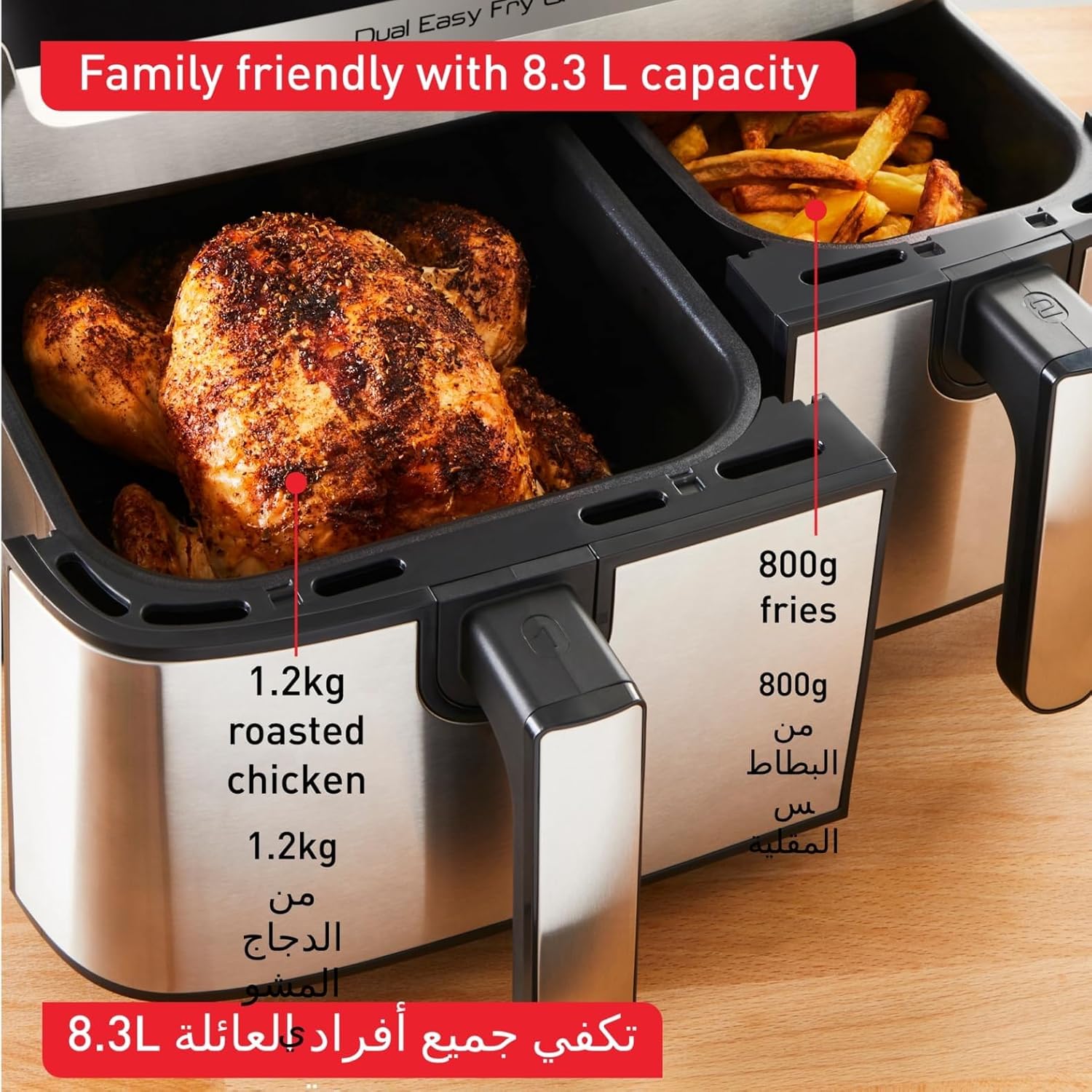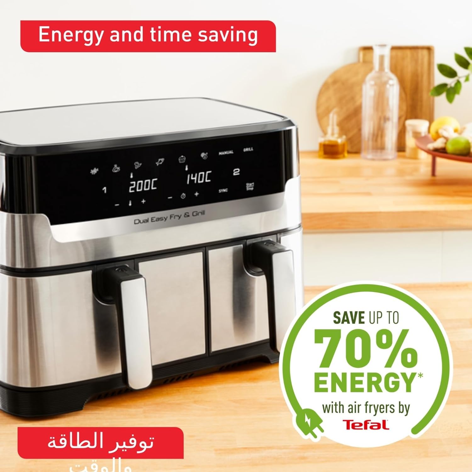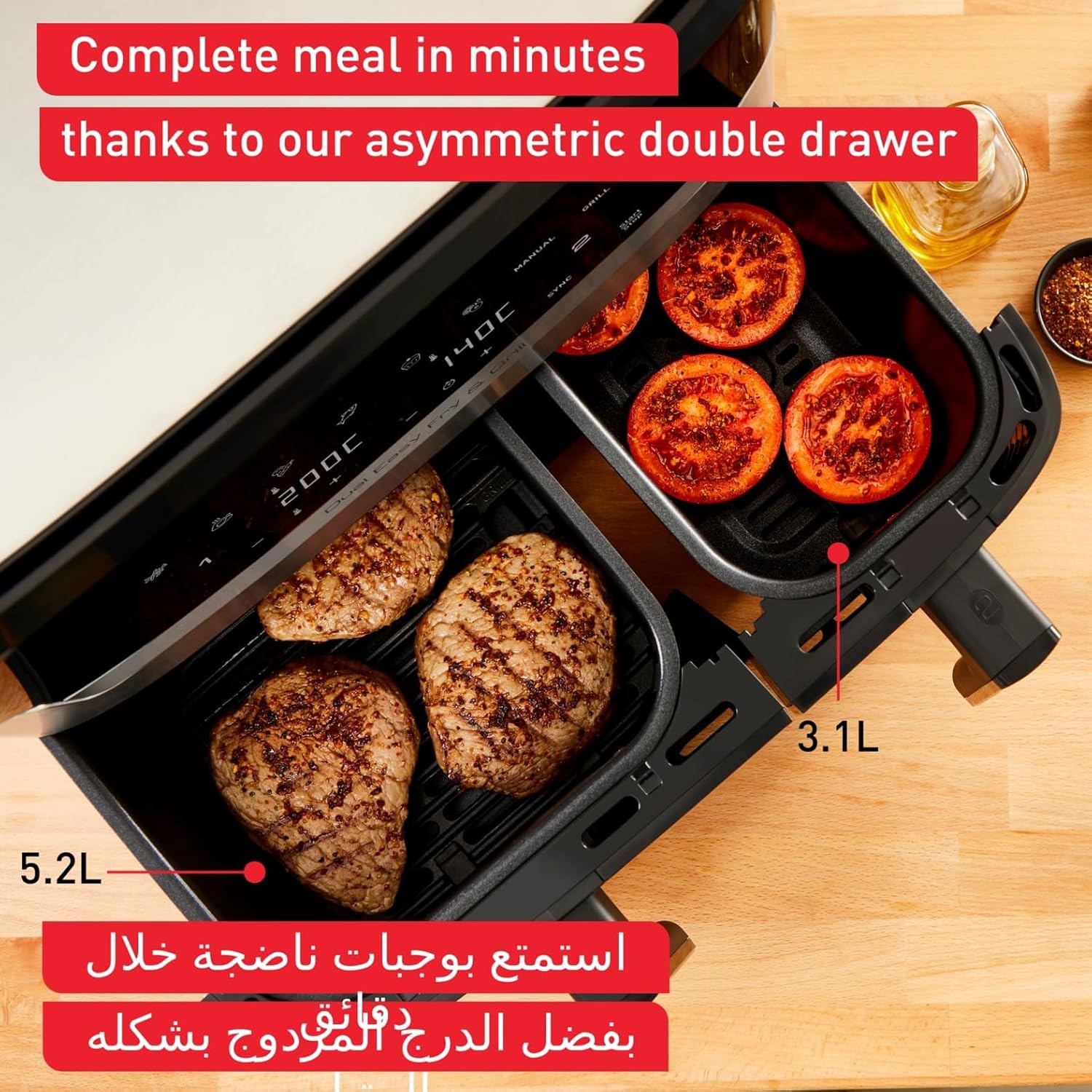 تحضير وجبة كاملة لجميع أفراد العائلة أصبح أسهل من أي وقت مضى مع قلاية وشواية هوائية تيفال مزدوجة. مع درجين متعددين، يمكنك طهي نوعين مختلفين من الطعام في وقت واحد، لتكون الوجبة جاهزة في خطوة واحدة دون عناء.