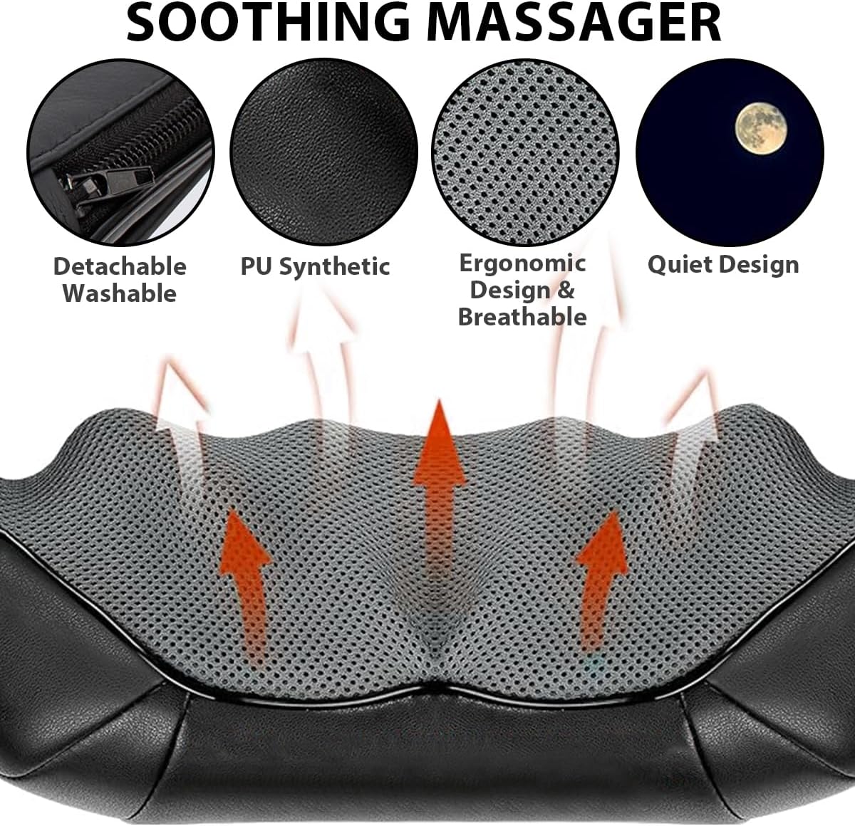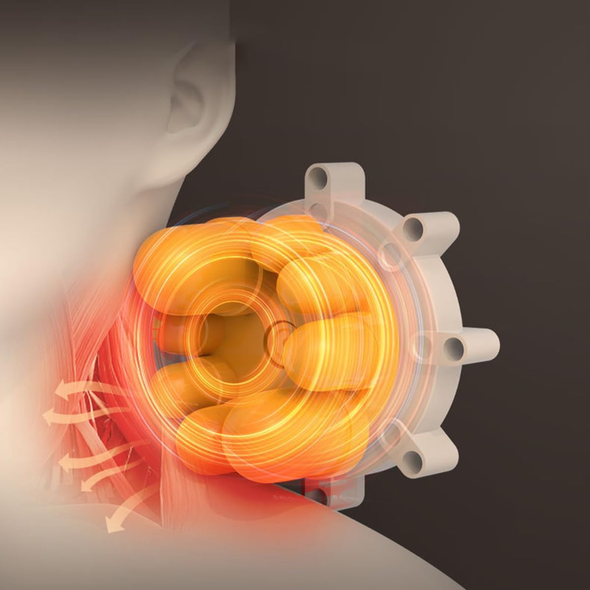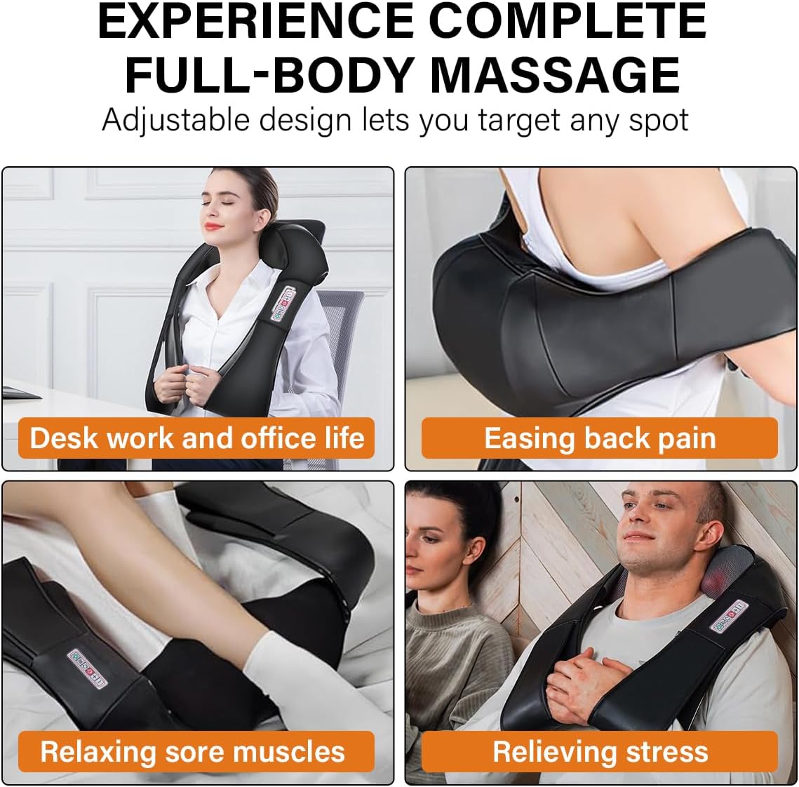 مش مقصود بس للكتفين والرقبة — تقدر تحط المدلك على الذراعين، الخصر، أو حتى الساقين لتخفيف الألم حسب حاجتك. يشتغل كوشاح يلف على كتافك أو كوسادة تُوضع على أي منطقة محتاجة عناية، وبحجمه المحمول (حوالي 40 × 17 × 10 سم) تقدر تاخده معك للسيارة أو المكتب بسهولة.