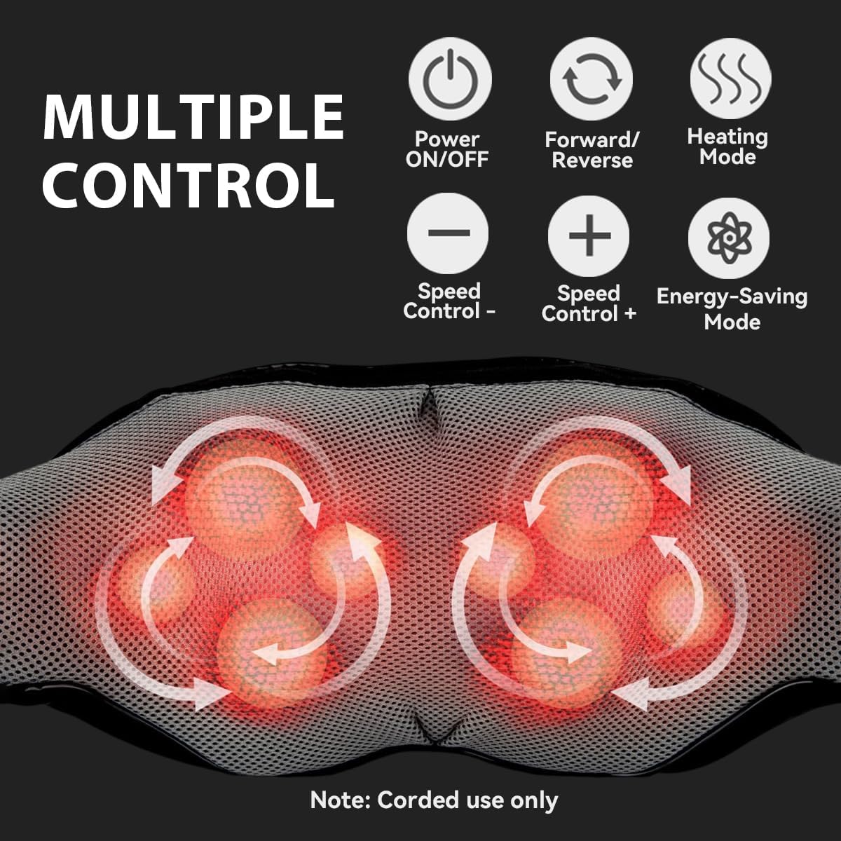 يحتوي الجهاز على بطاقة تدفئة بالأشعة تحت الحمراء توفر إحساسًا دافئًا يخفف توتر العضلات ويزيد فعالية التدليك. نظام السلامة يتضمن تسخين تدريجي وحماية ضد السخونة الزائدة، والميزة تقدر تطفئها بإيقاف واحد متى ما حبيت — مريح وآمن للبشرة.