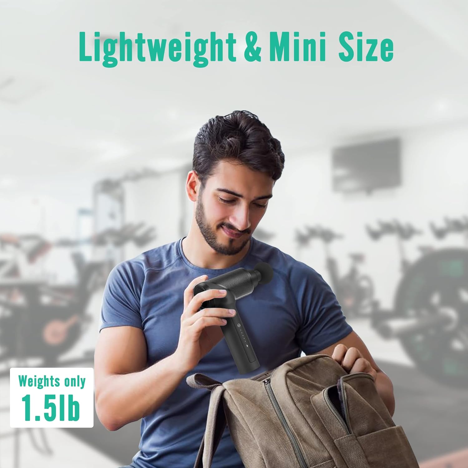 وزنه حوالي 1.5 باوند فقط — سهل الحمل في حقيبة الجيم أو حتى أثناء السفر. يأتي مع 6 رؤوس قابلة للتبديل (مخروطي، شوكة، دائري، مسطح، مجرفة، ورأس ستانلس ستيل) لتخصيص التدليك حسب المنطقة: من نقاط الضغط الدقيقة إلى العضلات الكبيرة.